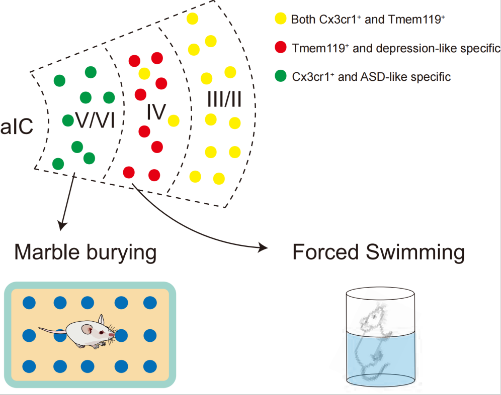 前岛叶皮层是人体的感觉处理中心,同时也是与人类的情感和社交行为调控相关的重要脑区,该脑区与抑郁症、自闭症、精神分裂症和阿尔兹海默症等精神疾病均有关联报道。近年来, 大量临床证据表明小胶质细胞与精神疾病的发病有密切关联。尤其是疾病相关脑区中的小胶质细胞如何影响疾病,日益成为神经疾病的研究热点,
