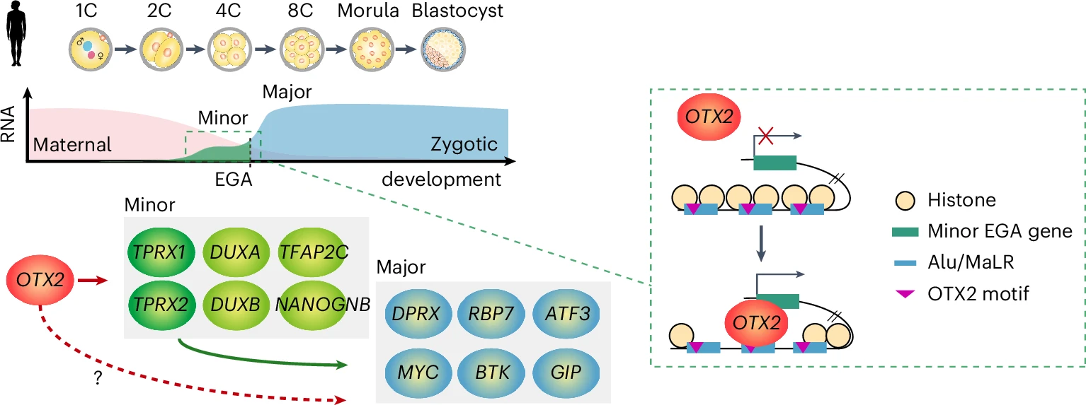 本研究OTX2在人类启动EGA过程中的功能进一步表明,Otx家族对EGA的作用可能是一种深度保守的生物学机制。通过揭示OTX2如何启动人类胚胎基因组激活,本研究加深了对人类早期发育分子基础的理解,为改进辅助生殖技术及探索发育障碍的分子原因提供了新方向。