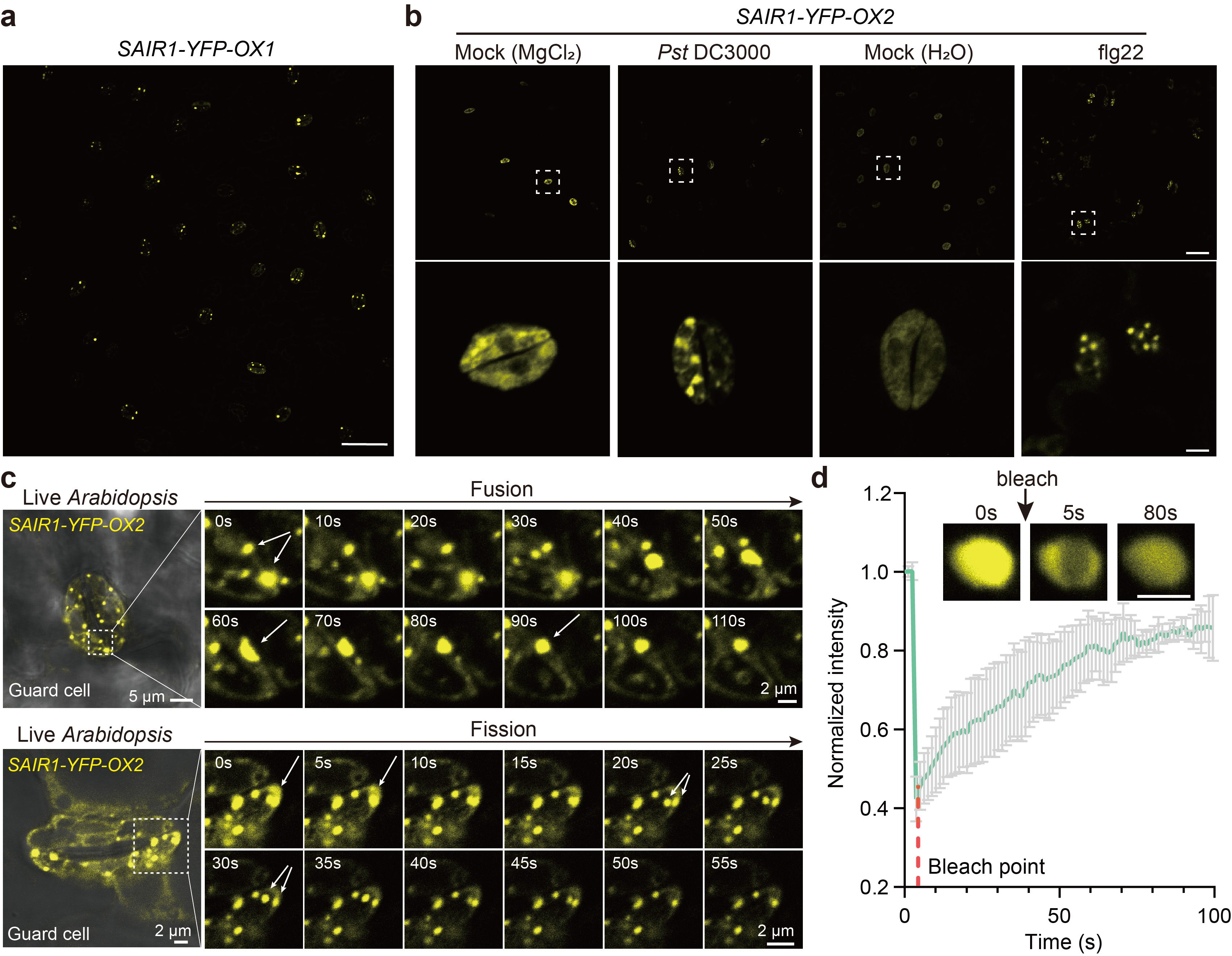 图2. SAIR1受病原菌诱导在保卫细胞中形成凝聚体